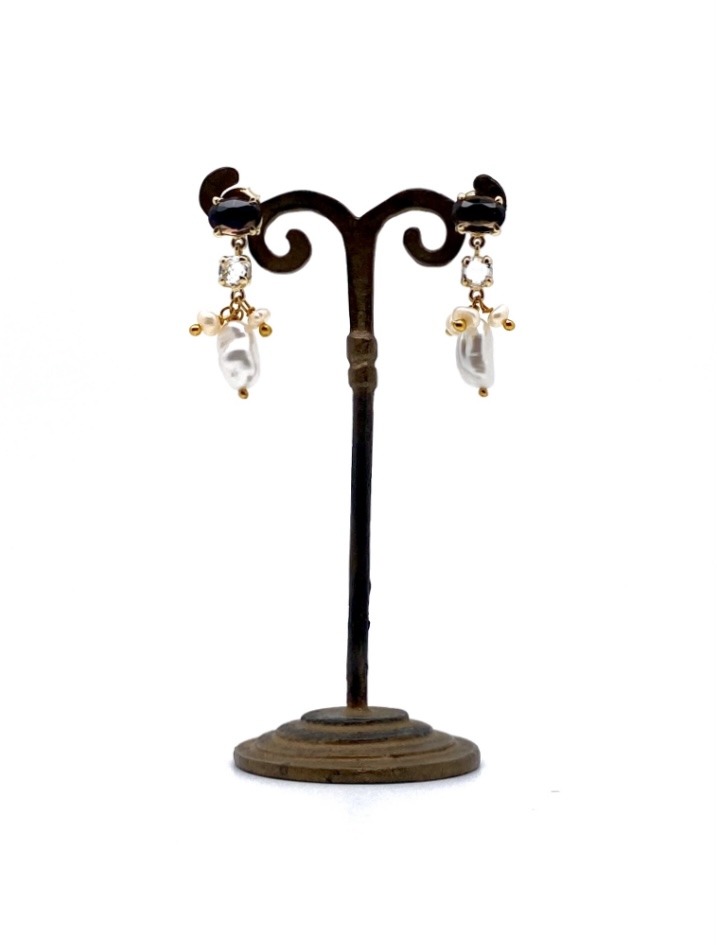 Handgemaakte unieke oorbellen met witte zoetwater parels, champagne kleurige zirkonia en rookkwarts. Charmante oorstekers die elegant en draagbaar zijn. Leuk bij een wit shirt of een sierlijke jurk, een oorsieraad dat je outfit afmaakt.